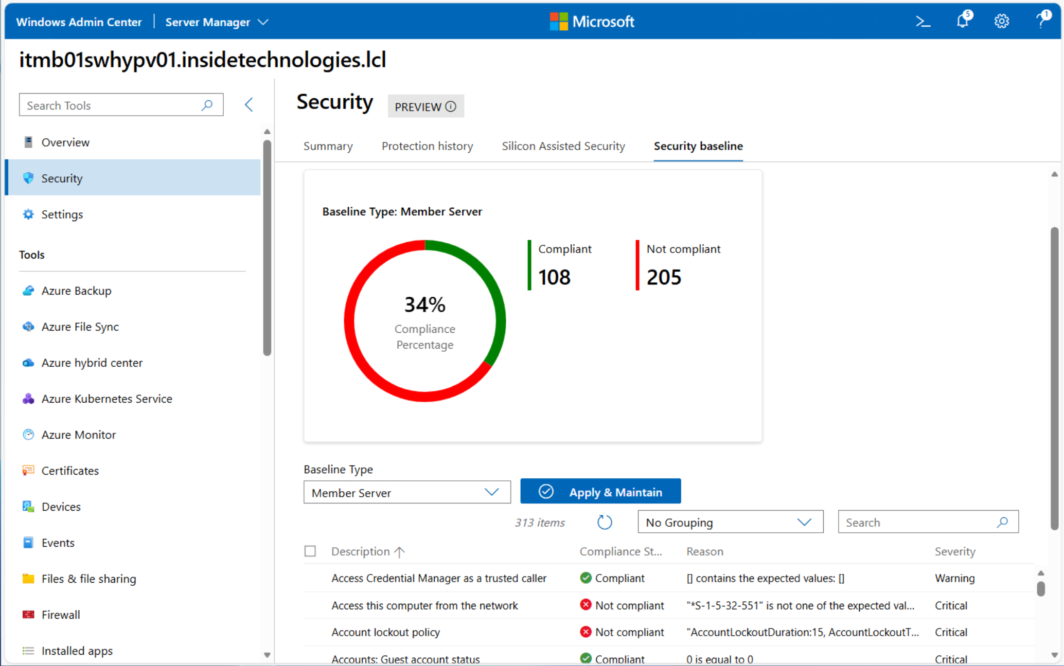 Windows Admin Center introduce potenti strumenti di sicurezza per Windows Server 2025, aiutando le organizzazioni a stare al passo con le minacce informatiche in evoluzione. Le principali funzionalità includono: